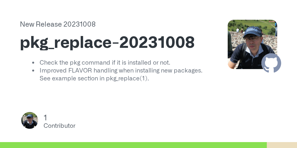 pkg_replace-20231008 FreeBSD X Facebook はてブ LINE コピー 2023.10.30 この記事は約1分で読めます。 pkg_replace-20231008へアップデートしました。 Release pkg_replace-20231008 ?? kdeguchi/pkg_replaceCheck the pkg command if it is installed or not.Improved FLAVOR handling when installing new packages. See example secti...
